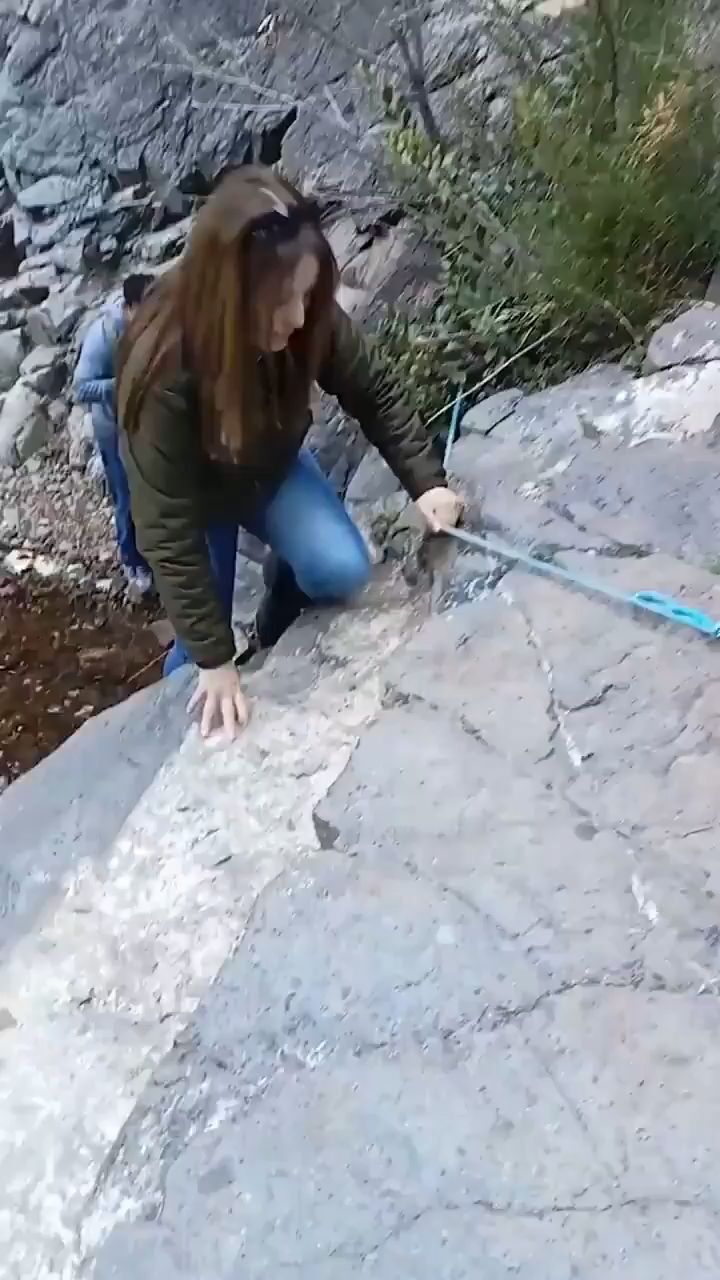 getreu dem motto „flutsch und weg“ verschwindet diese frau in den kleinen wasserfall.