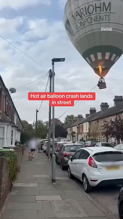 dieser heißluftballon legt eine notlandung in einem wohngebiet englands hin.